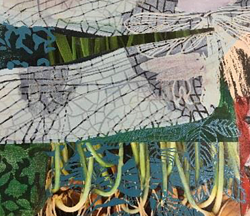 Brooke Steiger, "New Growth" (detail), 2019, Odonata (Dragonfly) Series, mixed-media monoprint, framed 21 x 28"
