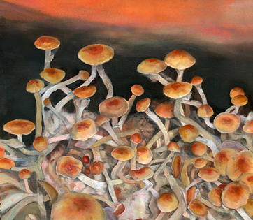 Automatic Dream Theater by Brooke Steiger is an evolving, multi-media project featuring several small scaled, found-object sculptures in the form of insect, animal and hybrid/human characters. These nature-inspired personalities inhabit theatrical sets and installations, and each serve as muse in a variety of other media: photographs, drawings, paintings, prints and books.