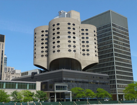 In my city, Chicago, the wrecking ball is literally looming above a brutalist masterpiece, Bertrand Goldberg’s Prentice Women’s Hospital of 1975. There’s no need to recount the predictably tortuous narrative surrounding the arrival at this moment over the last four or five years. Northwestern University owns it, they don’t want it, they want to tear it down and build a research facility. There’s always more money in demolition and constructing new structures than in rehabbing or adapting existing buildings. The city wants the money and jobs, architectural preservationists in Chicago are largely ineffective and the public just doesn’t warm up to a building they think looks fascistic or strange or just plain ugly. While all this was playing out in various courts of law and public opinion, the Art Institute of Chicago held an exhibition trumpeting Bertrand Goldberg’s work (the late architect also built the curvy and iconic Marina City in Chicago), and extolling Prentice. But to no avail, the hospital undoubtedly will be gone before the end of this year.