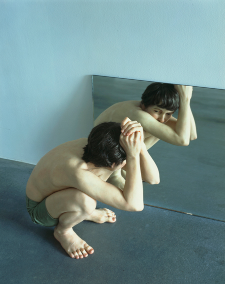 Some of the highlights: Tauba Auerbach’s painting "Fold," was made by folding up canvas, spraying it with paint and then stretching it over a frame; Jud Nelson’s "Hefty 2-Ply," a seemingly stuffed and life-size Hefty bag that is actually sculpted from marble; Ron Mueck’s "Crouching Boy in Mirror," a strangely scaled sculpture of a young boy gazing at himself in front of a mirror; and Ai Weiwei’s 1000 porcelain sunflower seeds, realistically milled and painted by hand (this is a tiny replica of his huge installation manufactured by a village in Jingdezhen, China). Among the few technology-spawned works is a black and white video, “Rain” by Thomas Demand, a meditative visual and audio allusion to raindrops repeatedly hitting the pavement. In fact it is a stop-motion animation comprised of a bunch of cellophane candy wrappers with the sound produced by eggs frying in a pan. Italian artist Maurizio Cattelan’s “‘Untitled” is a mixed media/assemblage/collage powered device with miniature elevator cabs, computer chips and working mechanical doors and lights, all of it challenging preconceptions of scale and perspective. Argentenian artist Leandro Erlich’s "Subway" runs a 1 ½ minute DVD loop of people on a subway, framed by a realistically scaled stainless steel structure with glass, simulating the experience of observing the motions of a typical subway car. "Lifelike" not only stirs us to experience a combination of unsettled, disturbed, confused, curious, and amused feelings, but also invites us to question authenticity, to think about how artworks are made, and help us find a sense of poetry in ordinary objects.
