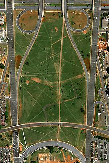 Clarissa Tossin is a conceptual artist who is fascinated by maps, mapping, and documentation of humans on the landscape. There are three distinct but related components in "Study for a Landscape." The dominant one, “Brasilia by Foot,” focuses on a large green space in her hometown of Brasilia, more specifically on the footpaths created by pedestrians crisscrossing it. In the show, there is an inkjet print of a satellite map of the green space and six small-edition prints of the same map made with ink that she created using soil from the actual location. The drawings document Tossin walking the various paths while counting the number of steps taken. Hence one of the titles: “Brasilia by Foot: 8,463 Steps.” “Ladrão de Tênis (Sneaker Thief)” is composed of 36 plaster casts of the inside of used sneakers mounted in rows on the wall. Although they bring to mind the subject matter of the map pieces, "Sneaker Thief" is actually about the rising number of violent crimes due to theft in Brasil, a direct result of the country’s growing capitalist economy.