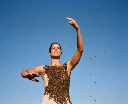 In this jaw-dropping video, thousands of bees cover Wright's body as she practices Tai Chi. According to the artist, Tai Chi and bees are similar since they both have the capacity for violence; but when peaceful, they produce vitality in both mind and body. Accordingly, "Be" is a metaphor for "how to remain peaceful in the face of danger." As long as she remains calm and peaceful, no harm occurs.