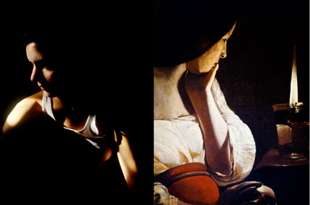 Nan Goldin was authorized to wander through the Louvre after hours to shoot photographs of the art there. A selection of those photographs is juxtaposed with about 400 of her own images to create "Scopophilia," meaning "love of looking." This project is both a 25-minute slide installation and a series of paired photographs. It is clear she is in awe of both the paintings she chooses to reproduce and the living subjects in her own work.