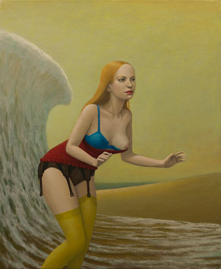 John Tarahteeff’s California upbringing is evidenced in his latest body of paintings, many of which take place by the seaside or feature marine motifs. Replete with surrealistic elements and implausible circumstances, Tarahteeff nevertheless works in a modern, distinctively figurative vein, where the human body is of paramount visual concern. Though Tarahteeff wants his paintings to be decipherable for their individual figures and settings, he has said he also strives for “an underlying tension, an improbability that keeps the illusion fresh over the long course of its making."