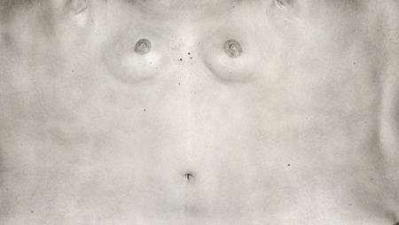 Throughout this series the anatomical elements on display are constant: armpits, mammaries, bellies, and navels — but oh, what a gamut lies in the details! How lean or full are the breasts and pecs; how bushy, stubbly, or bare are the underarms; what stories do scars and tattoos intimate; what pigmentation reveals of race or sun exposure in the absence of other information. How do we connect the dots between freckles, birthmarks, and stretch marks without succumbing to the mind’s tendency toward physiognomy? Yong’s works reveal everything and nothing about their subjects, turning individual morsels of skin and bones into ciphers and archetypes. They are as much examinations of viewers’ assumptions as they are of subjects’ flesh.