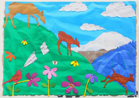 For his third Seattle solo show since 2011, Bill Braun displayed an unusually large number of trompe l’oeil paintings. Working in the same vein for nearly 30 years, Braun’s new work takes his airbrush virtuosity for granted to subtly introduce nature, ecology, leisure and endangered plant and animal species as subjects. Newcomers are hypnotized initially; then stupefied with wonder; and finally astonished by the works' quiet beauty. For more long-term admirers, Braun follows 19th-century American faux realists William Harnett and John Frederick Peto and, like them, mixes landscapes and still lifes to draw attention to bigger issues. Mortality and the vanity of life were the Victorians’ allegorical messages; for Braun, any moralizing is soft and tender, like his comic “Whooo” and “Spotted Owl,” or more ambitious scenes such as “Forest Life” and “Lighthouse Beach.” The fragility of nature is like the pieces of torn paper that seem to make up each work.