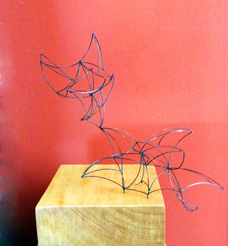 McCartney creates intricate paper sculptures in which colored squares are cut, stacked, and assembled into both two-dimensional wall pieces and complex spirals. In “Service Award,” he cuts, folds, and compartmentalizes dozens of geometric-patterned silk neck ties to create a tribute to the men who wore them. Trained in the art of metalsmithing, McCartney's bronze brooches are presented as elegant wall pieces. “Line Drawing #7” is a similar but larger piece that works well as a freestanding sculpture, in effect a drawing in space. The artist's jewelry-making experience is evident in many of his complex pieces, which require great skill and patience to manipulate and assemble. “English Country Cottage with Leopard,” for example, is a wall piece constructed of thousands of puzzle pieces painstakingly glued together to create a beautifully textured abstraction.