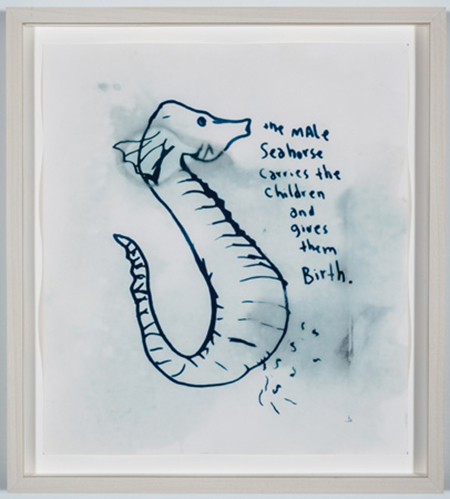 Dario Robleto, detail from "Life, Left to Struggle in the Sun," 2012, 16-part cyanotype, ghost images of original drawings, hand-written lyrics and poems by now deceased writers, pop stars and poets, sunlight, chlorophyll, ocean water, watercolor paper
