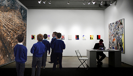 What it is not. An art fair is not an exhibition of modern and contemporary art. It is not curated, and is not organized to propose or convey a single idea about current art. It has absolutely no intellectual agenda at all, and if it provides you with one it’s purely by accident. While a fig leaf of some kind of discourse is laid upon it — thematic panel discussions with local academics, little booths set aside for community art organizations, sometimes a few big name speakers — that’s actually kept to a minimum because such activities take collectors off the floor. An art fair is really not for the public at all, the admission price is set high enough (at ExpoChicago it was $20) to discourage a casual Navy Pier stroller, and the number of attendees (those that aren’t collectors, anyway) is of secondary importance to the organizers of the fair. While some do attend, it’s not for the artists who have work shown in galleries there, watching yourself sold (or worse, not) and evaluated is an experience akin to witnessing yourself being made into sausage, something best not observed first hand. Art students and the like often get free admission because they serve as interested background figures, to give the real function of the fair some character and energy. There’s not a single reason why anybody working at an exhibiting gallery should answer your questions (unless you are a collector); an art fair is not held for the education of the public. (If you don’t believe me, just watch what happens when a college student interrupts a dealer’s cell phone conversation to ask why that Kiefer costs so much.)
