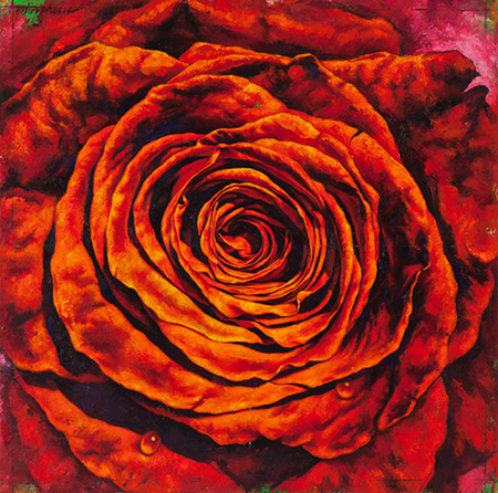 Jim Morphesis, "Rose V," 2011, oil and mixed media on wood panel, 26 x 26"