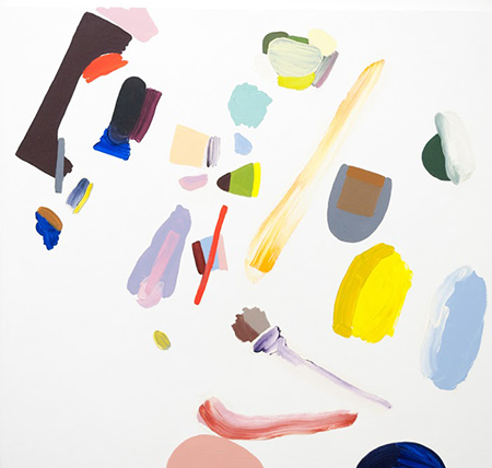 Sculptures by Michelle Liccardo transmute metal, concrete, paper and paint into porous constructions reminiscent of multicolored coral. In Perry Doane’s silkscreen prints, shapes in deeply saturated hues spar with implacable expanses of white. Amy Bernstein’s oil paintings take up the now long-running question of whether painting is dead or thriving. With reductivist rigor she methodically sets forth the sundry brushstrokes of academic painting and Abstract Expressionism, as if in a scientific compendium. As they dissect and de-glamorize the idea of gesture, the paintings manage to avoid the tedium of pure exposition, thanks to a welcome dose of whimsy. In fact, although the show as a whole comes across as quite formalist, the prevailing lack of morose art-theory and the emphasis on popping color lend a spoonful of sugar to help the aesthetic medicine go down.