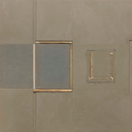Despite the fact that John Fraser’s exhibition, “Interval & Ratio,” is full of dismantled and reworked hardcover books, the works are neither intended to be or come across as “book art.” Rather, the Chicago native’s motives more aligned with that of the Minimalist canon. The insides of the spines and covers are splayed out geometrically upon panels, their collaged, monochromatic rectangles resembling a more tactile incarnation of Robert Ryman.