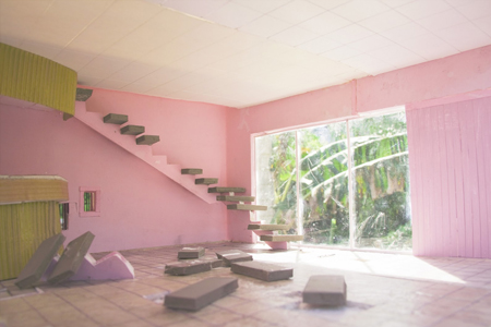 People live in highly individualized spaces, even though overall we might understand a room to consist of a simple four walls, a floor and a ceiling. Our experiences, our sensibilities and our emotions are reflected in the spaces we make for ourselves. In the delightful group show “re/Constructed” 11 artists riff on that idea, inventing loosely defined architecture through drawing, painting, photography and sculpture. Guest curator Corinne Chaix is herself is an LA-based artist who excels in moody Surrealism and has included one of her paintings in the show, “Virtual World,” a portrait of a man sitting inside an oblong cube, coolly observant and isolated from the world. Of course, houses, buildings and rooms appear throughout the show, but the similarities end there. Photographer Anna Carey builds her own models and photographs them, producing large prints in saturated colors. They are interiors and exteriors in a kind of dilapidated midcentury style, clearly models and places that Barbie and Ken might live in. “New Galaxy” depicts a motel in the desert, replete with three cactus trees, a desert setting and blue sky. "Reception” takes us into the interior of a swank lobby, with a cool cantilevered staircase coming down one wall. Others among my personal favorites are the house sculptures of Michael Jantzen that are miniaturized enough to be placed on small, individual shelves. In their white finish and reductive forms, they become iconic metaphors. In "Rocking House" two houses stuck together bottom-to-bottom are mounted between two wheels, their fates tied together by the Wheel of Fortune. In "Dream House," there is a single bed, with tightly tucked sheets, that sits in the abode's open doorway. The pillow end is just inside the house; one imagines lying in that bed, looking out to the world. Indeed, the magic of these pieces lies in being able to transport oneself into the space of the artwork, as if one were there.