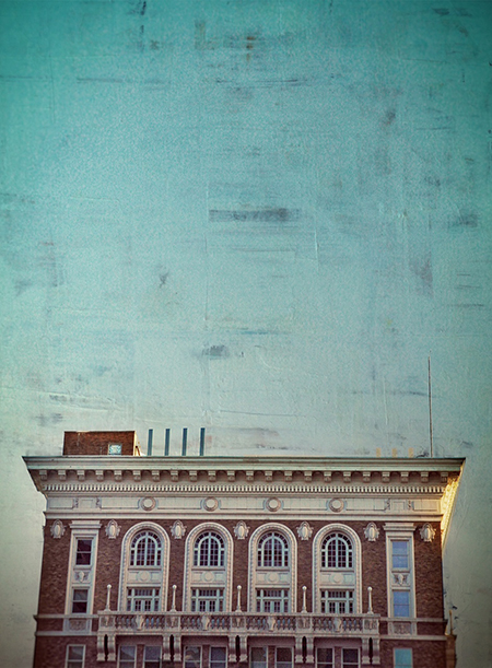 Phoenix is a photogenic city, believe it or not — from its legendary sunsets and dust storms to its cactus-studded peaks and motley assortment of Modern architecture. So it’s always a treat to see what photographers come up with — Chamber of Commerce glossies or views that are realistically grittier? Lisa Olson and Terry Pisel strike a happy medium, viewing their city through a quirky yet affectionate lens. Because both artists treat their hand-transferred photos with encaustic, the images manage to convey that drenching light and haziness that often settles over this heat-laden city, de-saturating its colors. In several of the works, the skies take on a textured, painterly quality, suffusing hints of green, yellow and purple. Just as noteworthy are the compositional styles, with both artists seeking unconventional perspectives and close-ups.