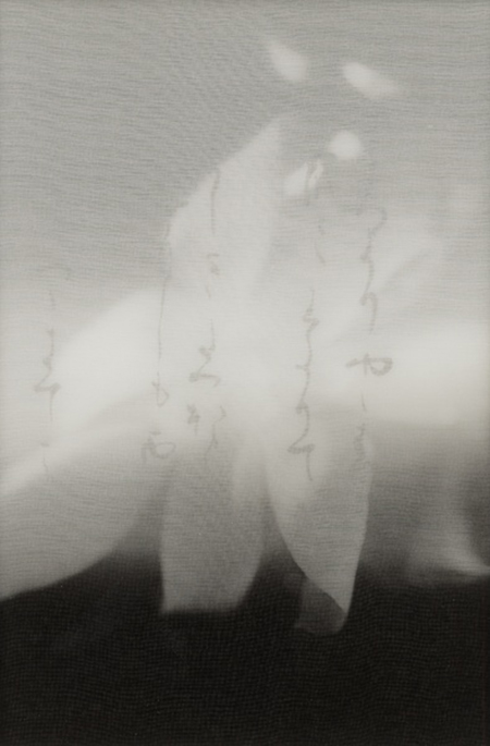 "For a very long time I have been aware of expressing myself through light or indeed in light," wrote Henri Matisse in 1948. "My mind thus escaped from the space around the motif of the picture, to a cosmic space above me." Matisse was in the midst of his last great act, wielding a pair of scissors for his cut-outs series. The new tool allowed the artist to play with purer hues and crisper lines than his brush would allow, pushing Fauvism to its denouement. I was reminded of Matisse's late-in-life discovery of the powerful new process when viewing Chaco Terada's "Between Water and Sky." The Japanese-born artist's father was a master calligrapher, and began training Terada in the 1960's when she was four years old. In her 20's, she moved to the United States to teach calligraphy and met photographer David H. Gibson. As the artists grew closer, Terada developed a method to activate her calligraphy through photography.