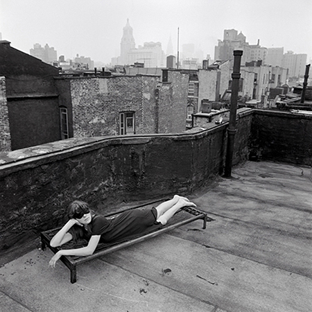 A predilection for clean design and scaled-back storytelling is evident in the work of Philadelphia-based Jenny Lynn, whose photographic work has graced book covers and magazine advertisements. She recently conceived and edited EyeBook, a compilation of works by 60 artists, all tackling eyes as the subject matter. Yet in her two series for this solo show, Lynn proves that as an artist working with archival black-and-white processes, she knows how to lend just the right aura of mystery to her prints and collages. In the “Little Rituals” series, one of the strongest works is a conceptual piece in which two empty chairs face each other in an empty room, summoning ideas about abandoned spaces or hollow conversations. In another picture a woman looking away from the camera runs her hand through her hair, raising questions not only about the long silver glove she’s wearing but also the implicit desire for anonymity. Questions about identity also arise in “Rooftop,” where a masked woman lounges on a rooftop, alone against a metropolitan skyline.