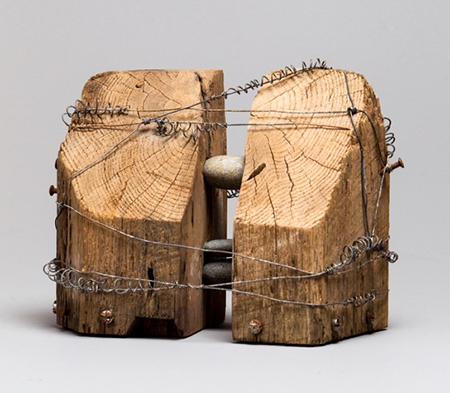 Wood sculptures by Monica Wyatt, such as “San Andreas 3” and “San Andreas 2” use shape and form to convey what could be an urban disaster. Their positioning contrasts with David Lovejoy’s “You said to meet on the Bridge,” a more representational work that offers a look at balance and nuance, an elaborate bridge constructed from salvaged wood and piano parts. Other standouts include Anne Weber’s “Portal,” an entrance into an unknown world crafted from found cardboard and polyurethane. June Diamond’s untitled ethereal, jewel-like metal and recycled glass pieces glow in vivid blues and greens. The artist says she dreamed the images she created. Dream or reality, “Skyline” is a landscape to be savored.
