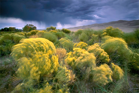 Among the black-and-white images are the works of Rich Greene and John Fisanotti. Green’s well-composed “Chaco Kivas” records the remarkable complex of stone and earth dwellings of the ancestral Pueblo Peoples, located at the Chaco Culture National Historical Park in New Mexico, a UNESCO World Heritage Site. Fisanotti’s “Afternoon at Yellowstone Lake” attracts the eye through its stunning atmosphere, produced by a spectacular cloudy skyline that converges towards some gnarly random driftwood in the foreground. This image was taken at Yellowstone — designated the first National Park of the U.S. in 1872 by President Ulysses S. Grant.