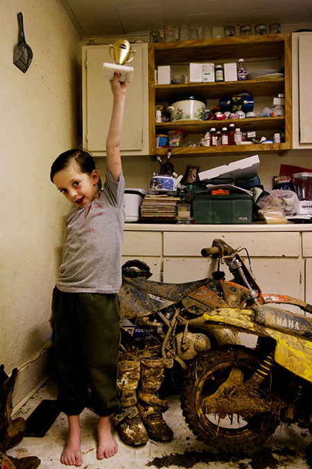 It’s certainly a version of Middle America that is subject to romanticizing, yet there are contradictions that mix emotions ranging from sadness to humor. A seemingly delightful image of a father carrying his daughter, but she appears to fall off the man’s shoulders. Terror overcomes her face as we wonder if she falling or perhaps she is being taken against her will. One is not entirely sure, as the questioning proceeds to who is this man? This dark line of inquiry continues repeatedly in the exhibit as responses range from hopelessness to hopeful. Eich’s critical documentation of these subjects raises second thoughts regarding the ways we imagine the heartland of this country.