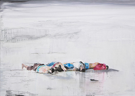 Some of these works hold up a mirror to show us our flaws, as in Brian Maguire’s “The Known Dead”: an image of bodies on the beach, loosely painted and further emphasizing the de-individualization that often occurs during the discourse on immigration. Works like Dawoud Bey’s selection from his series “The Birmingham Project” are an important reminder of the past and how recent that past actually is. Here, Bey photographs a child the age of one who was murdered in the 1963 bombing of the 16th Street Baptist Church, and an adult the age that child would have been today. Still others provide a viewpoint from outside the biases of written histories, like Iñigo Manglano-Ovalle’s “Green Card” issued to Christopher Columbus.