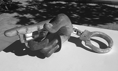 "Dear President: An Art Show about Important American Issues" is a potent and pertinent gathering of 50 artists. Using a variety of mediums, the works exhibited focus on topics such as money in politics, climate change, women’s reproductive rights, gun control, immigration, military spending, GMOs, fracking, drug policy and more. Curator Peggy Sivert Zask says “These works of art seek to create and communicate a collective narrative, articulating who we are, where we come from, what we stand for and what we are against.” The works displayed are shown with artists’ letters to the president in a wide ranging exhibition featuring stand out pieces such as Cintia Alejandra Segovia’s “A Big Beautiful Wall,” a stunning video work that tackles issues of immigration using witty, and fresh photographic and video images. “One” by Richelle Gribble is a circular, intricate puzzle in a range of media on panel. With 91 pieces that throb with color, each represents a link in a social, biological, and technological web. Ellen November’s “House of Guns” gives us a delicate, child-like image of a capitol building constructed with guns as its infrastructure. This piece is both poignant and trenchant. Kate Carvellas combines found-art and sculpture to create a vision of American life. John Dingler employs digital media to take on the topic of money in politics, and vindictive laws directed at whistle blowers. In an adjoining gallery, curator Karrie Ross helms “The Faces Within,” another powerful group exhibition that presents personal “split screen” faces that represent the artists. The images reveal their creators mental, physical, and emotional states over the course of the election year.