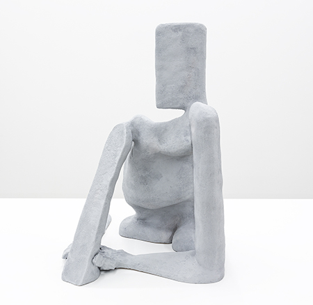 Jesse Wine, “True Curiosity,” 2017, paint, sand, ceramic, 30 1/2 x 21 x 23"