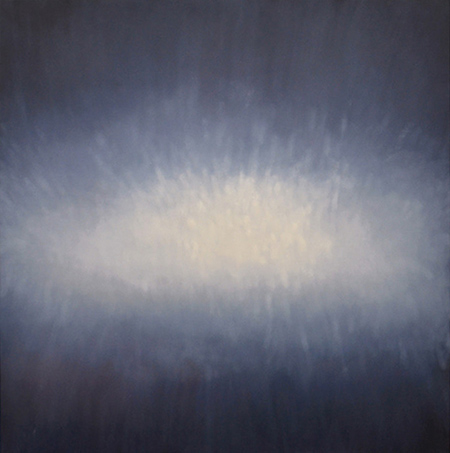 Despite its title, the “Burst" series has no connection to Adolph Gottlieb or to atomic warfare. Instead, one of the artist's touchstones is the late work of Monet, an artist by then going blind, desperately glimpsing light through his clouded eyes and creating a glow with his almost neon colors. Monet’s late work is a rage against the night, like a lens flare in the coming darkness. Likewise, Weinstein’s “Burst" paintings allow a return to pigmentation, a subtle dappling of the surface that suggests fireworks exploding in a distant sky, seen before being heard.