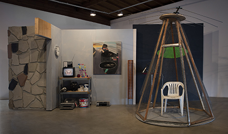 William Leavitt’s immersive "Cycladic Figures" presents an eclectic mix of installations, paintings, and works on paper. Regardless of the medium, his work here creates a rich narrative that we are invited to contemplate and expand upon. The title of the exhibition refers to sculptures created in the Cyclades Islands located off the coast of Greece five thousand years ago. A sense of mystery pervades Leavitt’s work, such as with the heightened noir of “Lennie’s Set,” and the sci-fi of “Faraday Cage.” The large scale sculptural pieces have also served as sets in films Leavitt has produced. In a similar fashion to his installations, Leavitt’s paintings and works on paper shape fascinating, layered scenes that compel us to unravel their meaning. Leavitt’s conceptual work in his “Head Space” series reveals two silhouetted faces against a background that morphs fields and cities as distant landscapes, while the faces themselves contain floating objects and architectural ruins.