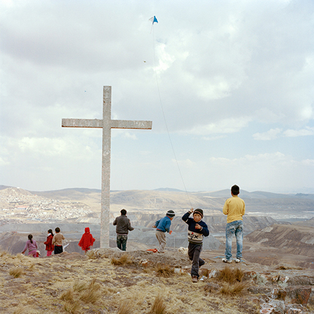 Paccarik Ore, "Cruz de Paragsha, niños, cometas y desmonte," 2016, photograph
