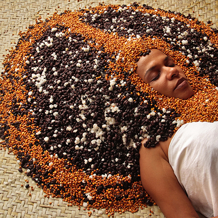 The slave trade, which started in Brazil in 1538, when the Portuguese transported Africans to Brazil, can be traced back through an interactive map, created by Jamelle Bouie and Andrew Kahne. Two videos (2015) by Ayrson Heráclito, shot in the House of Slaves on Gorée Island in Senegal, show a performance of sacudimento, a spiritual practice in Candomblé, through which its members find healing from the trauma brought on by the slave trade. Another eye-catcher in the exhibit is “Delírios de Catarina” (2017) by Caetano Dias, an installation made of two tables joined together as a symbol for the table on which slave holders dined and where slaves served and suffered. The latter is stressed through the numerous disembodied heads that obtrude from under the table. But rather than being a sad portrayal of Salvador and its people, the exhibit then takes an upbeat turn as its title promises — Axé means “peace” or “let it be so!” — by displaying the works of artists who found inspiration by Candomblé