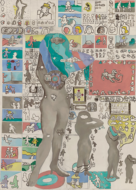 There is also a feminist story here in our moment of corrective inclusivity, for turning to Chicago provides a cache of relatively under-examined women artists. If Warhol, Lichtenstein, Rosenquist and Ruscha reigned supreme in the original Pop narrative, and if it was Ed Pashcke and Jim Nutt, along with perhaps Roger Brown who fared best in Chicago's version, let's now entertain some of the ladies so as to even the score. This is not to suggest that the work was anything but tantalizing to begin with. Ramberg's short career upped the ante on depictions of the objectified female body — a relentless leitmotif throughout Pop. Rocca's odd arrangements of domestic accoutrements — cartoon handbags, night lights and bowling trophies — are humanist rejoinders to the anonymous objects of a Lichtenstein or Warhol. And Rossi's composites of biomorphic parts or Gladys Nilsson's super bizarre elastic caricatures stack up well against the lurid expressionism of a Peter Saul.