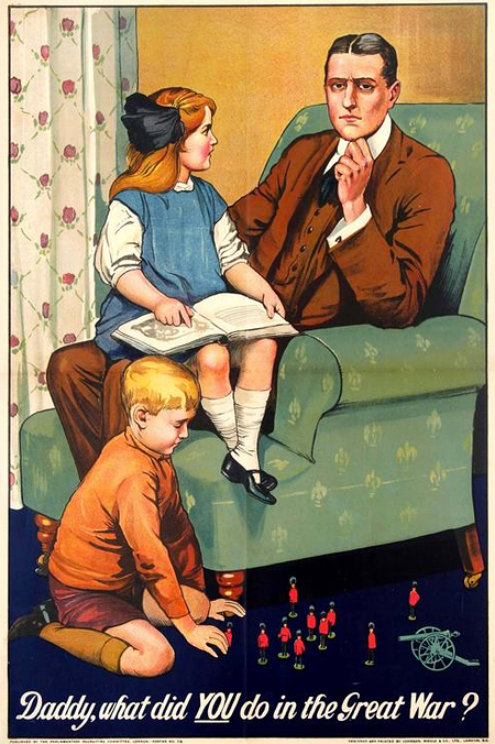"Daddy, what did YOU do in the Great War?," military-recruitment poster from England, circa 1917