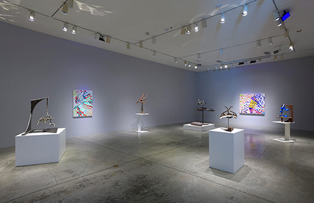 Two questions might understandably pop into a viewer’s mind when reflecting on the title of this exhibition of recent work by Mark di Suvero. The seemingly innocuous title, “Painting and Sculpture,” of Mark di Suvero’s current exhibition kind of threw me at first. The artist is known primarily as a sculptor, so why give “Painting” the lead billing? The show includes seven small sculptures and five acrylic, metallic and phosphorescent paintings on canvas.