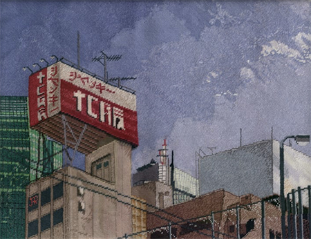 Jacquelyn Royal, “Tokyo 1” (detail), 2009, needlepoint, thread on canvas, 15 x 18”