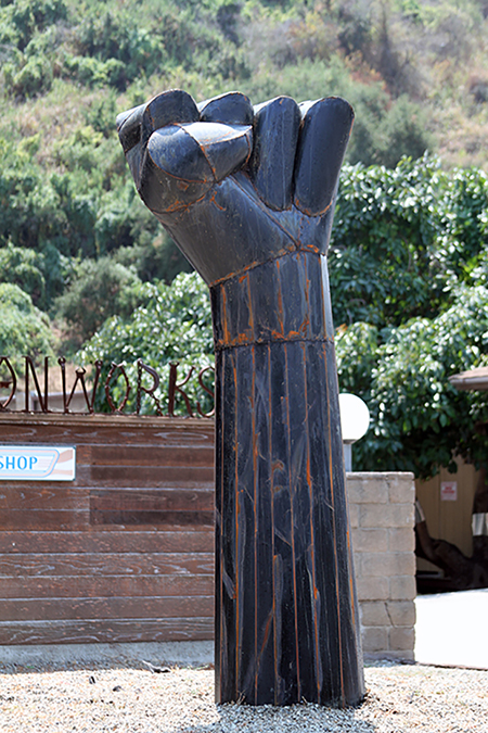 His final submission to the Arts Commission was “Black Lives Matter,” a sculptural work made of sheet metal, depicting a raised arm and fist symbolic of the BLM movement. It is a timely testament to the horrors occurring in our nation, and to the healing powers of people uniting behind a common humanitarian cause. It also presented the opportunity for Laguna Beach to join the nationwide BLM movement supporting equality for all people — a movement including Washington, D.C.’s Black Lives Matter Plaza mural last June, the words “Black Lives Matter” painted in large yellow letters on the street across from Lafayette Square in front of the White House.