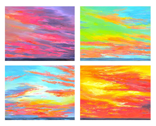 Malibu Sunsets recreated from actual sunsets but with saturated Hues -4 x 8 x 10 Panels mounted on 12 ply linen-