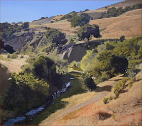 Bruce Everett's landscape paintings of Southern California and the Central Coast are characterized by dramatic light with raking shadows, unusual vantage points, and inspired compositions. Everett’s reasons for painting the landscape are first and foremost out of a deep emotional need to paint what moves him. Seeing a powerful scene isn't enough - he needs to paint it to really grasp it, and in a way to be done with it. But what attracts him to a subject in the first place are the formal elements---the dynamics of the composition, the textures, the shapes, the subtlety of colors and the polarities and rhythms of light and dark. It all adds up to being 'of the place'---a connection that can't be explained except by painting it. It is important to him to accurately represent what he experiences. “I don't want to contrive a landscape so much as discover it,” he writes of his work.