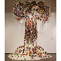 Three-dimensional and wall-mounted relief sculptures blend autobiography with cosmic, geographic, and historic
