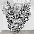 Holly Wong's "Phoenix" is composed of drawings on pieces of mylar stitched together to form "the thing with fe